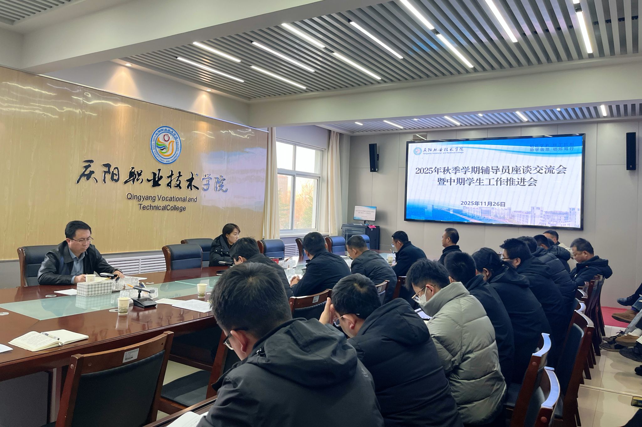 11月26日下午,庆阳职业技术学院在树人楼311召开2025年秋季学期辅导员(班主任)座谈交流会暨中期学生工作推进会。纪委书记谢聪聪出席会议并讲话。各系(院)负责人、分管学生工作副主任、辅导员(班主任)代表及公寓管理中心相关人员参加会议。学生工作处负责人主持会议。