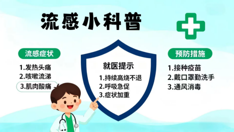 若出现流感典型症状(如突发高热、全身酸痛、乏力等),请务必及时就医,并居家休息,避免带病上课或工作,既有利于自身恢复,也能防止病毒在校园内传播。