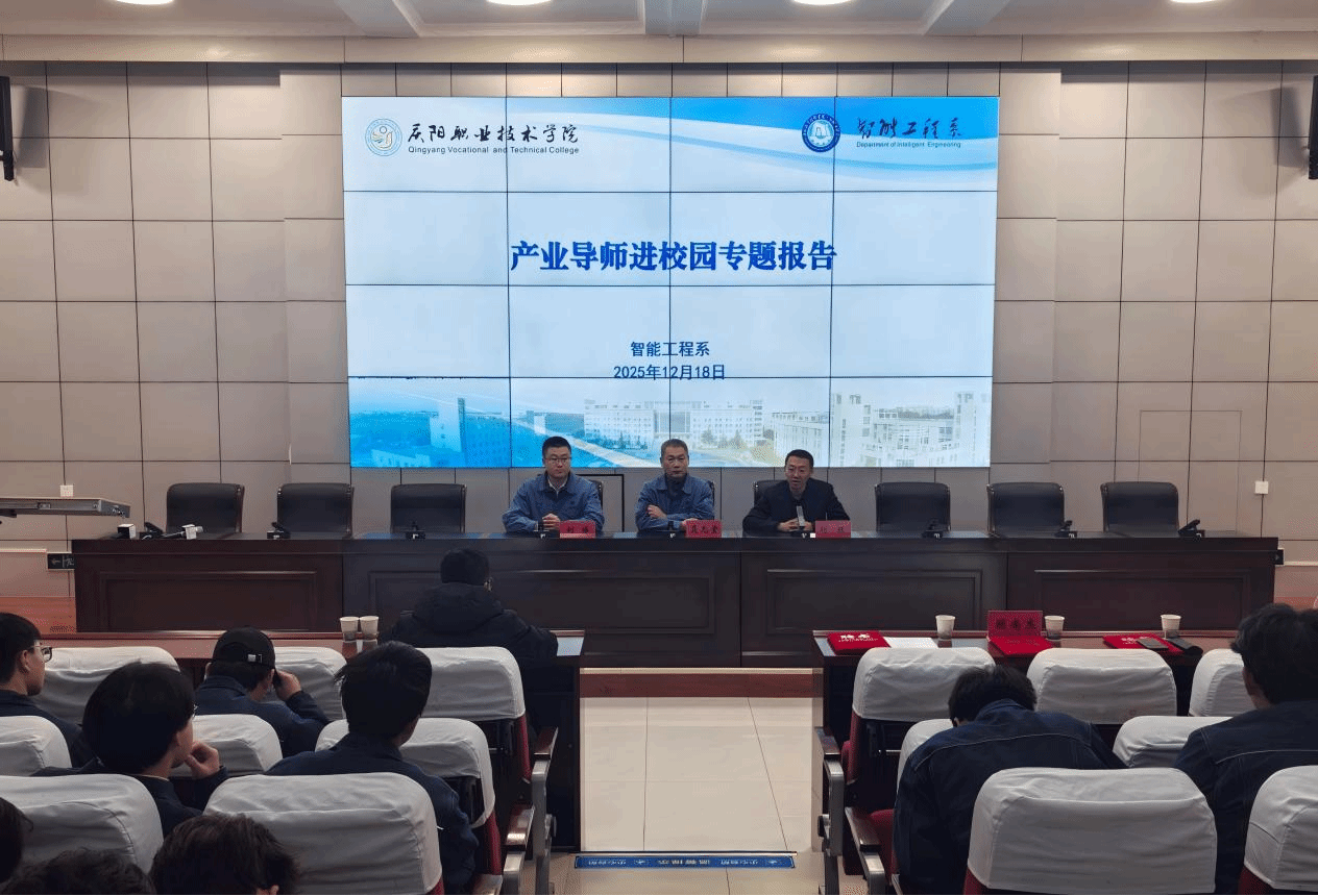 随后举行的专题讲座暨产业导师聘任仪式上,甘肃酒钢集团西部重工股份有限公司焊接首席技师、省级“聂允堂技能大师工作室”领办人聂允堂工程师,以《匠心筑梦想 技能赢未来》为题,分享其四十余年焊接生涯的成长历程与技术心得。他从初入行业的探索讲起,通过风电塔筒焊接工艺创新、高强度钢延迟裂纹防控等实战案例,生动诠释了“敬业、精益、专注、创新”的工匠精神。刘博工程师则围绕焊接质量控制关键技术,作《焊控精度·筑牢质量》专题报告,为师生带来前沿技术理念。讲座期间,学院正式聘任聂允堂、刘博、顾尚杰为庆阳职业技术学院智能焊接技术专业产业导师,进一步强化专业教学的行业支撑。
