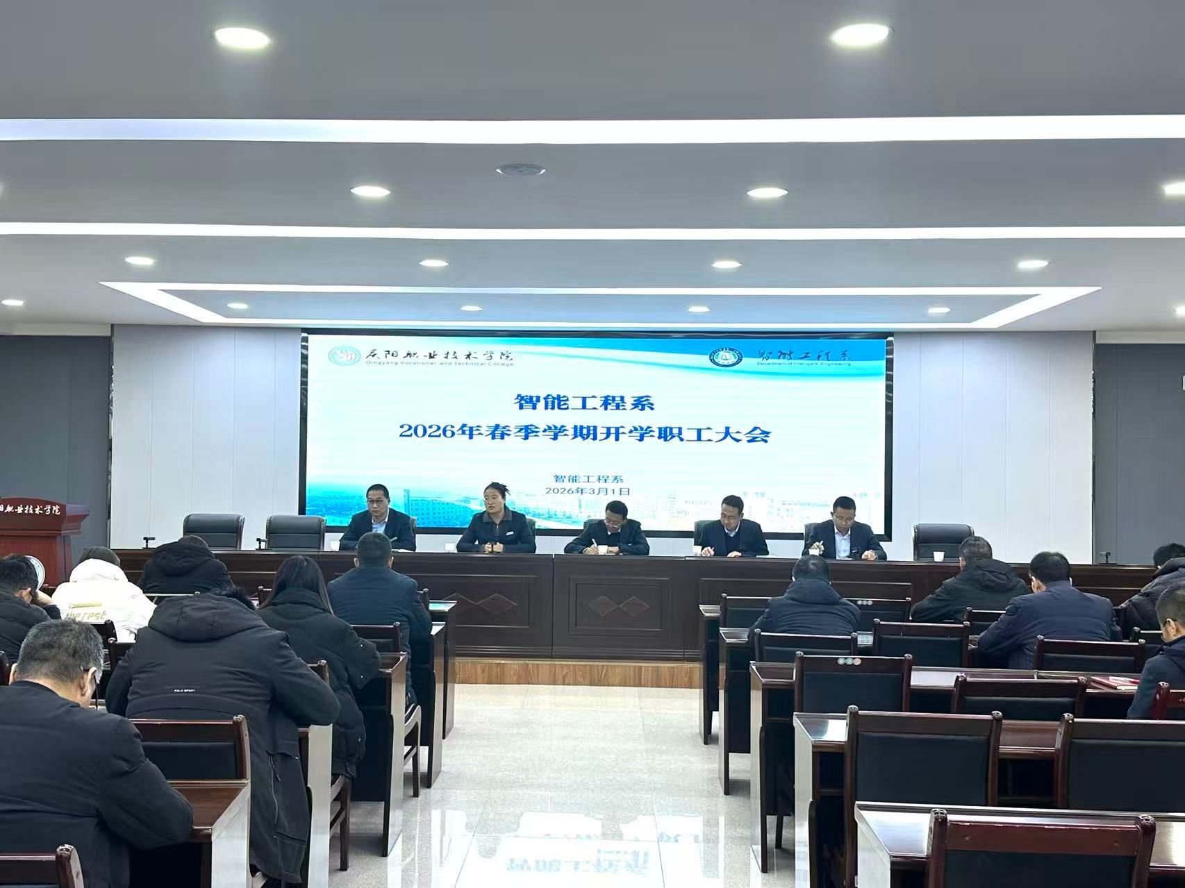 为深入贯彻落实学院年度工作部署,统一思想、压实责任、明确任务,2026年3月1日上午,智能工程系召开2026年春季学期开学职工大会。学院党委书记张建军出席会议并讲话,系全体教职工参加,系党支部书记雷佳琦主持会议。