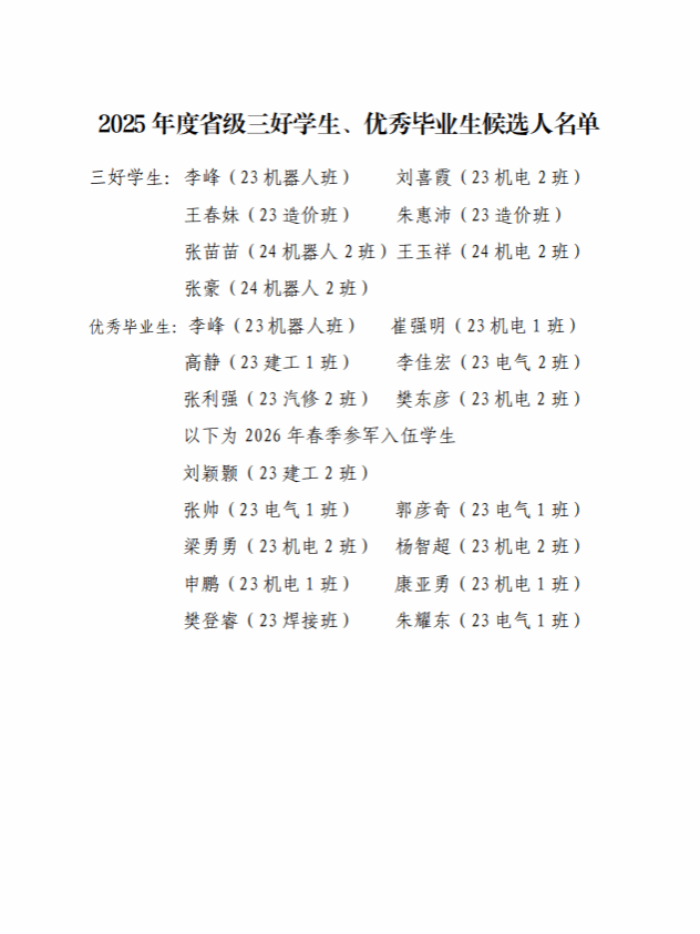 关于推荐2025年度省级三好学生、优秀毕业生候选人的公示